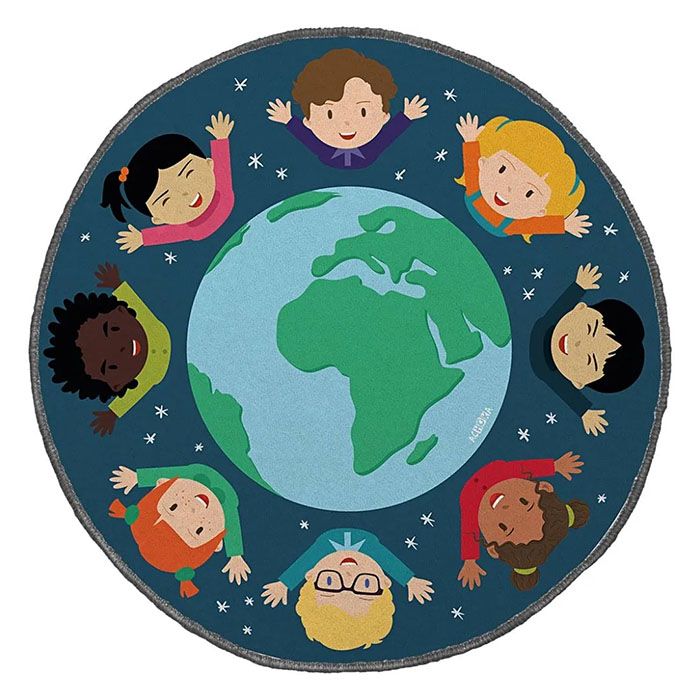 Samlingsmattan Världens barn uppmuntrar till diskussion om etnicitet och kultur. Gummerad halkfri undersida.