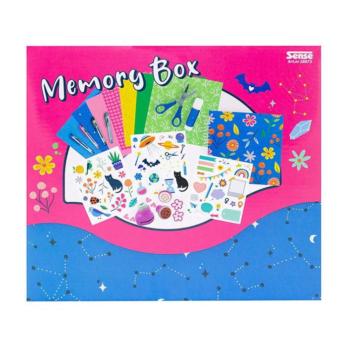 Skapa ditt eget lilla minnesalbum eller temabok med hjälp av innehållet från den här pysselboxen. Baserat på din fantasi och skaparglädje ihop minnen, recept, historier, utklipp eller fotografier från roliga stunder eller favoritintressen, eller varför inte föra en dagbok och dekorera dina sidor med dina egna texter, bilder, stickers.