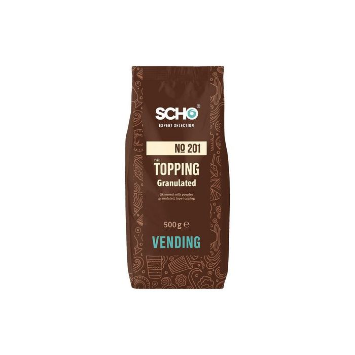 Dryckespulver för beredning av mjölkskum i vendingmaskiner. Topping nr. 201 'Granulerad' är gjord av 100 % skummjölk. Den naturliga mjölkiga smaken kompletterar smakprofilen för specialdrycker, till exempel idealisk för att tillaga en latte macchiato. För 180 ml färdig dryck: 3-5 g pulver till kaffe med mjölk 5-7 g pulver till cappuccino 10-16 g pulver till latte macchiato 5-7 g pulver till chokladmjölk