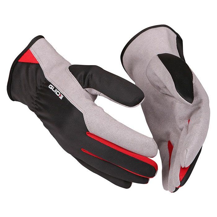 Montagehandske GUIDE 761 med dess kombination av mjukt fleecefoder, vind- och vattentätt membran, stretchig ovanhand och syntetläder i innerhanden gör denna handske till en favorit när det är kallt och blött.