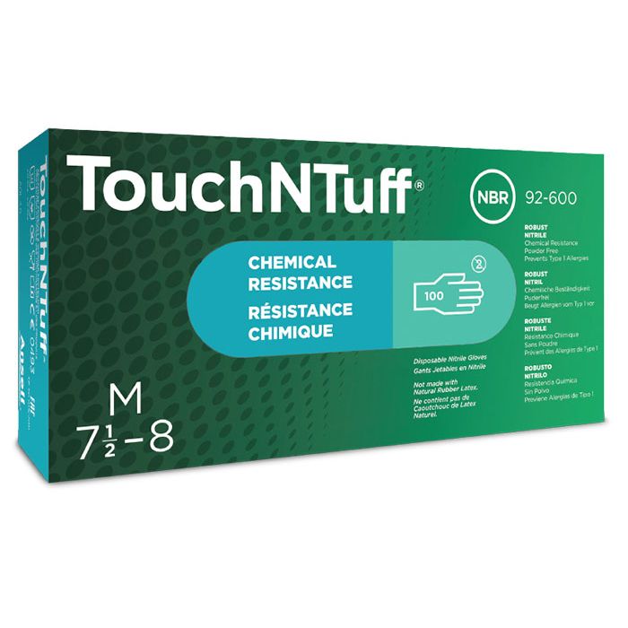TouchNTuff är tillverkad av nitril och har ett punkteringsmotstånd som är upp till fyra gånger bättre än jämförbara naturlatexhandskar, och tre gånger bättre än motsvarande neoprenhandskar. Handsken innehåller inga naturgummiproteiner, vilket gör att användaren inte riskerar att drabbas av typ I-allergier. Primära hudirritationsstudier och lapptester har inte heller påvisat någon risk för irritation eller kontakteksem.