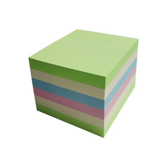 Pack of 6 FSC Mix Credit Recycled Sticky Notes. 76x76mm, 100 sheets per pad. 2x green, 2 x yellow, 1 x Blue & 1 x Pink. Plastic Free in a box.