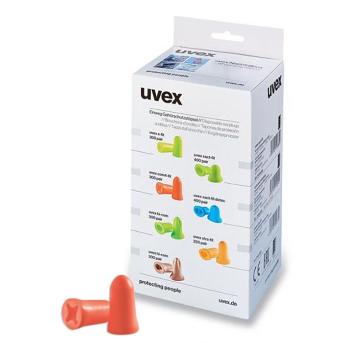 De ergonomiskt förformade engångsöronpropparna Uvex Com4-fit isolerar mycket bra och är därför lämpliga i extremt bullriga arbetsmiljöer. Öronpropparnas mjuka skum ger hög komfort, även vid långtidsanvändning.