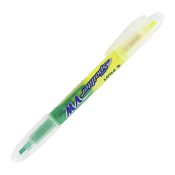Pilots Spotliter VW är en dubbelspetsad överstrykningspenna med en regulator för att säkerställa det perfekta bläckflödet. Spotliter VW är en väldigt praktisk överstrykningspenna då den till 70% består av Gult bläck och till 30% av Grönt bläck, i samma pennkropp. Den tåliga spetsen är av hög kvalitet och bibehåller sin form. De intensiva färgerna ger dig den ultimata överstrykningspennan. Pennan är en del av Pilots BeGreen-sortiment som är producerat av återvunnen plast.