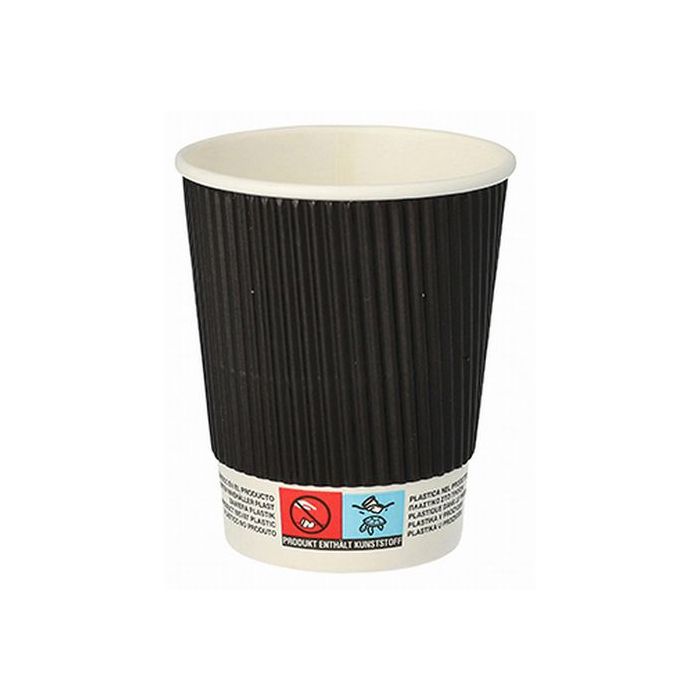 Mått: Ø 8 cm · 9 cm Volym: 0,2 L Material: Ripple Wall kartong med PEbeläggning Färg: Svart Tål värme upp till 90 °C, ej lämplig för alkoholhaltiga drycker Trendiga kaffekoppar i snygg kartong som avleder värme ifrån handen. Varm inuti, kall utanpå! * Papstar reko mmenderar