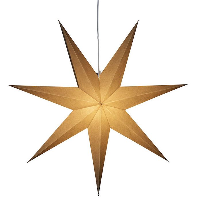 Hängande pappersstjärna med 7 uddar. Sladdställ med 5 meter anslutningssladd ingår, E14-sockel. Sladdströmbrytare. Diameter 60 cm