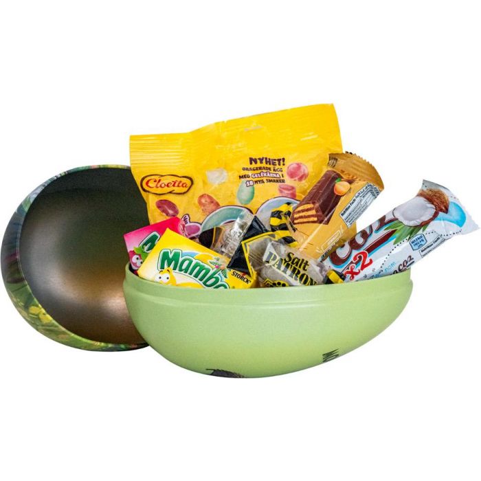 OBS! Påskartiklar för 2026 preliminär leverans fr.o.m. vecka 7! Plåtägg i härliga färger, fyllda med gott godis och charmiga Mumin-figurer. Inslaget godis i plåtägg med underbara motiv av populära Mumin, kommer i 3 olika design och våriga färger