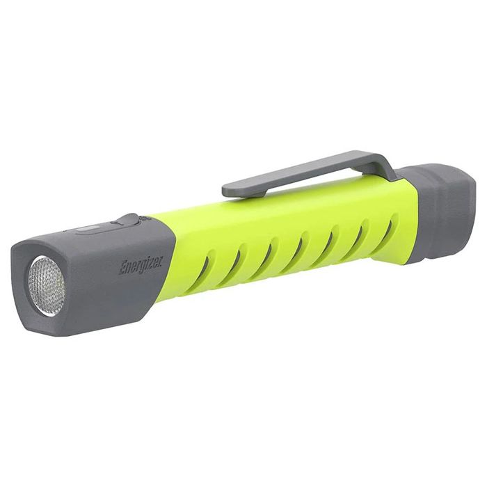 Inspektionsficklampa med halksäkert grepp och icke-ledande material för säker användning vid elektriska projekt. Med tre olika ljuslägen. Stora clips för trygg förvaring i fickan eller i den inkluderande praktiska påsen.