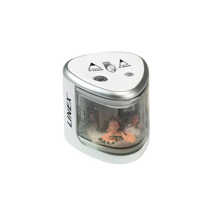 Batteridriven pennvässare för standard- och jumboblyertspennor. Med skarpa blad och en kompakt design är den perfekt för skolbänken, skrivbordet eller pennfacket. Med genomskinlig behållare, så att man lätt ser när det är dags att tömma. Drivs med 4 st. AA 1,5 V-batterier (medföljer ej) Passar pennor med diameter: 6-8mm samt 9-12mm