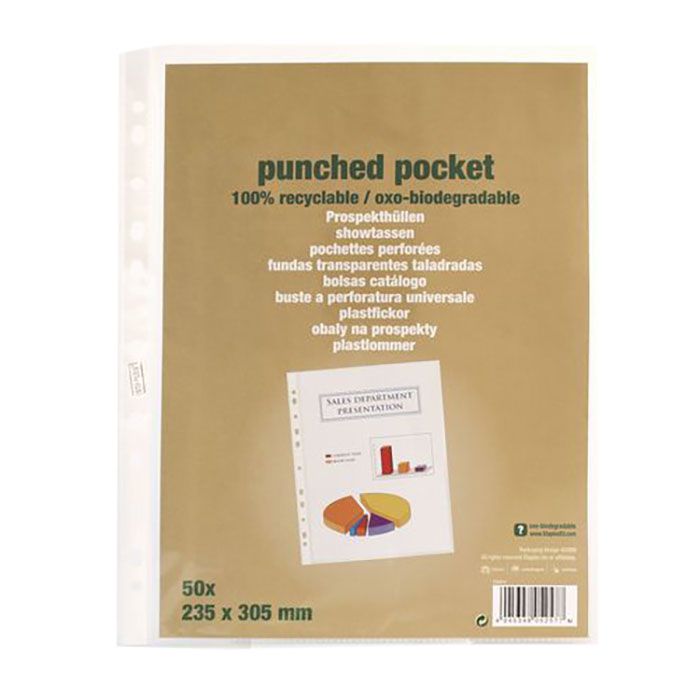 Bevara viktiga fakturor och andra dokument med dessa hållbara dokumentskydd i återvunnen plast. Skydda fakturor och andra viktiga dokument från damm och smuts med dessa dokumentskydd i återvunnen plast. Dessa mångsidiga fickor är tillverkade av tålig plast som gör det enkelt för dig att se innehållet. De är dessutom enkla att rengöra. Dessa dokumentskydd i återvunnen plast är försedda med elva pappersförstärkta stansade hål och de är idealiska för ringpärmar.
