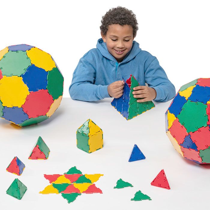 Denna förpackning innehåller tillräckligt Polydron för en hel klass. Totalt 184 delar med 100 liksidiga trianglar, 20 hexagoner, 40 kvadrater och 24 pentagoner.