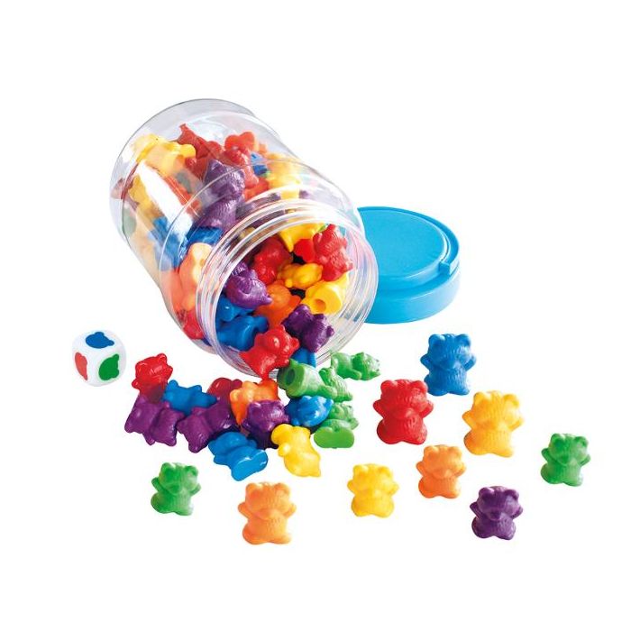 Lekfull färgträning med björnar och tärning! Set med 90 färgglada björnar och en tärning som gör sortering och räkning extra roligt. Perfekt för att öva färger, klassificering och matematiska färdigheter på ett lekfullt sätt. Ett pedagogiskt material som stimulerar både fantasi och inlärning. Antal: 90 björnar + 1 tärning Färger: Blandade färger Mått: Stor björn 2,5 × 1,5 × 3 cm, liten björn 2 × 1 × 2,5 cm Material: TPE Rekommenderad ålder: från 3 år