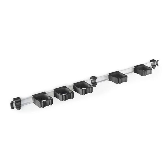 Skena 94 cm med 5 redskapshållare för redskap med Ø 15-35 mm. Monteras på vägg med medföljande väggfästen samt skruv och plugg.