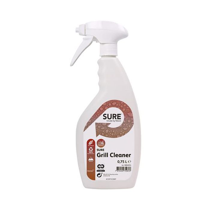 SURE Grill Cleaner är ett växtbaserat och 100% biologiskt nedbrytbart rengöringsmedel. Medlet är anpassat för att användas på hårt smutsade ytor så som grillar, ugnar och salamandrar. Produkten är lämplig för daglig använding. Medlet innehåller inga färgämnen och är parfymfritt. Högviskös produkt som ger utmärkt vidhäftning på vertikla ytor. Gör det lätt att skölja rent. Låt SURE Grill Cleaner verka i 15 minuter och skriubba sedan rent med borste eller skursvamp.