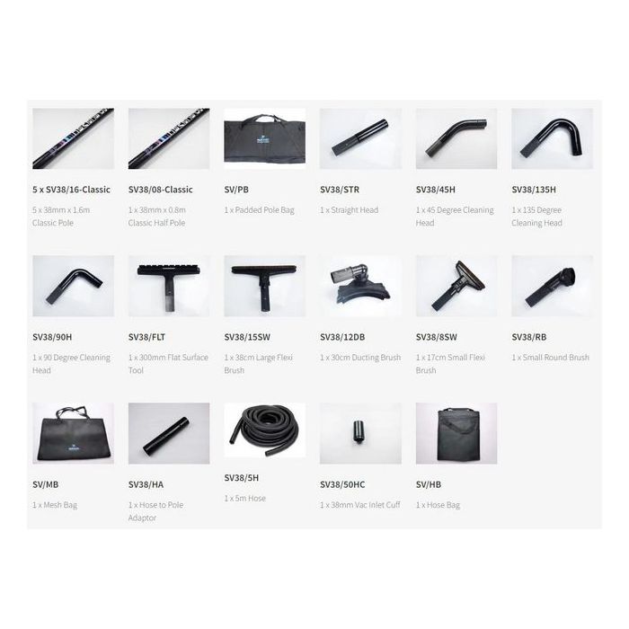 Rörsystem för dammsugning på höga höjder. Spacevac erbjuder lätta vridstyva rör som gör det enkelt att dammsuga på höga höjder och på långt avstånd utan att det blir tungt. Spacevac Classic är mycket populär och med en räckvidd upp till 10m. Komplettera gärna med smarta tillbehör (kontakta säljare/kundservice). Smart kameralösning så att man ser vart man dammsuger och man kan även filma för att verifiera städresultat. Om man ska dammsuga på hög höjd under längre tid så erbjuds även ryggsele för att kunna avlasta tyngden från armarna. Tvåmotorig dammsugare som har hållare för alla rör och munstycken, kompletteras med fördel med rörsystem för längre räckvidd. Dammsugare ingår ej.