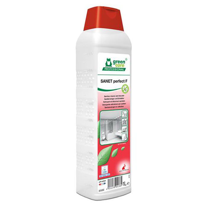 SANET perfect F är ett högpresterande rengörings- och avkalkningsmedel med exceptionella miljöegenskaper. Det värnar om människors hälsa och rengöringspersonalens säkerhet. Lämpar sig för användning på alla syratåliga ytor i sanitära utrymmen.