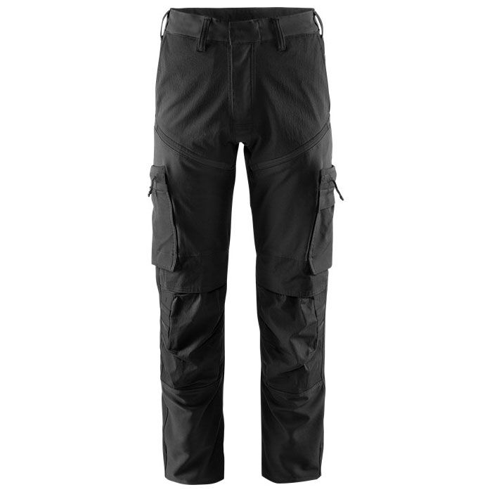 Smidiga arbetsbyxor förstärkta med slitstarkt ripstop och med en invändig resår i midjan för bättre passform. Praktiska fickor inkluderar benfickor med tryckknapp, dragkedja, verktygsfickor samt telefonficka och ID-kortsficka. Knäfickorna i ripstop-stretch är justerbara för knäskydd och ger extra slitstyrka, medan reflexdetaljer på knän och benslut ökar synligheten. Bensluten har också förstärkts för längre hållbarhet, och byxorna är certifierade enligt EN 14404 när de används med knäskydd 124292.