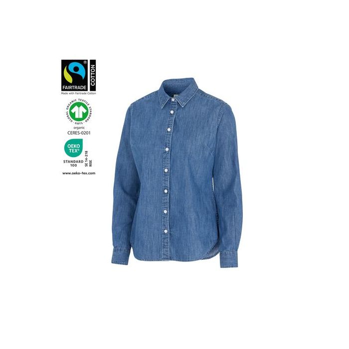Damskjorta i denimmaterial med mjuk känsla. Skjortan är enzymbehandlad vilket ger varje skjorta ett naturligt och unikt utseende. Cut away krage på herr och turn down på dam. Herr i slim fit och comfort, dam i insvängd modell med två insnitt i ryggen, för att ge en skräddarsydd silhuett.