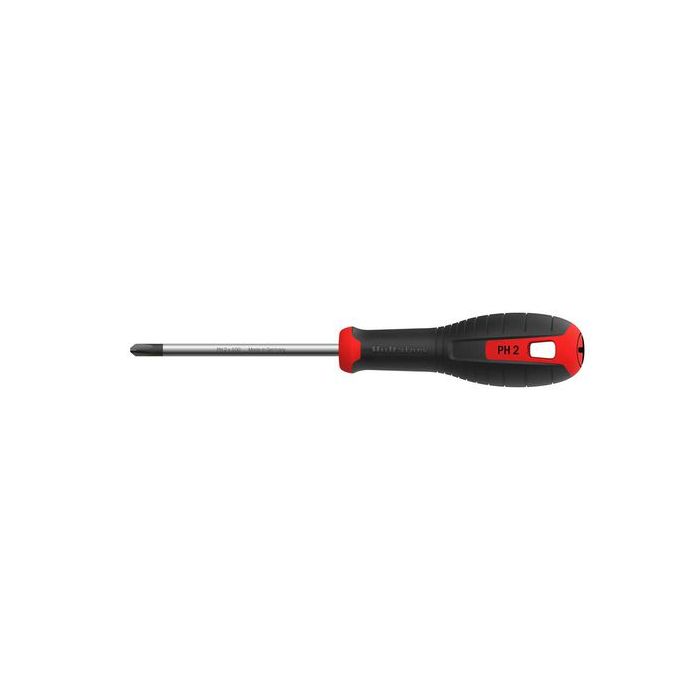 Phillipsmejsel för professionellt bruk, utvecklad tillsammans med hantverkare. Ergonomisk design för optimal komfort. Det långa gumm erade handtaget erbjuder grepp för precision och maximal kraftöverföring. Handtaget är tillverkat i tålig PPC-plast med ett överdrag av åldersbeständigt och greppvänligt gummi. Den permanenta märkningen av typ och storlek på toppen samt handtagets färg gör det enk elt att välja rätt skruvmejsel. Klingan är tillverkad av högkvalitativt härdat stål för lång livslängd. Skruvmejselns handtag har hå l för upphängning eller verktygssäkring. Handtagets utformning förhindrar skruvmejseln att rulla på lutande yta.