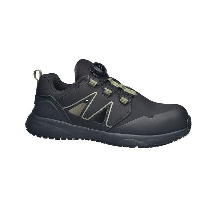 Superlätt säkerhetssandal med ett smidigt snörningssystem och en bekväm passform. Ovandel i slitstarkt Nubuck-läder & Aerotec-textil. Säkerhetssandalen är utrustad med tåskydd i komposit, flexibelt fibersömsskydd och förstärkt ProNose för extra slitstyrka. Mellansulan i EVA ger bra stötdämpning och har en hög re-bounce effekt. Yttersulan i gummi ger ett extremt högt halkskydd.