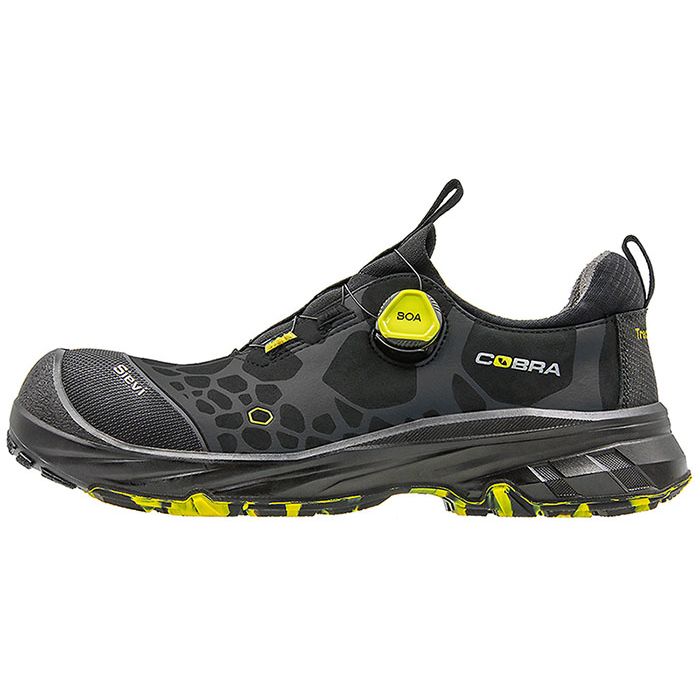 Den strumpliknande konstruktionen och den sidoplacerade snörningsmekanismen BOA® Fit System ökar skons användningskomfort. Skyddsskons utmärkta grepp och slittålighet har säkerställts med friktionssulan Sievi TractionPro®, vars sportiga profil tillhandahåller grepp och stötdämpning, speciellt till fotens stödområden. Elasticitetselementet FlexEnergy® binder den uppstående rörelseenergin och över 55 % av energin återgår till ditt steg.