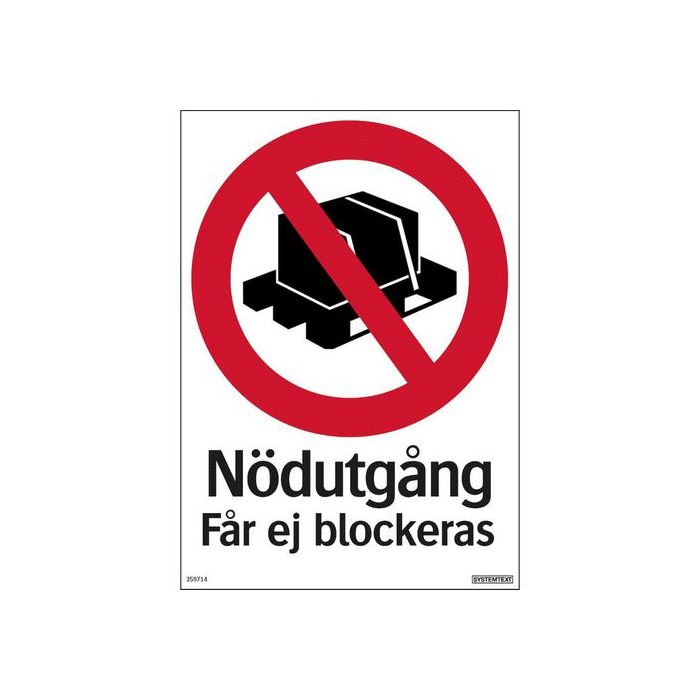 Skylt Nödutgång får ej blockeras 210x297
