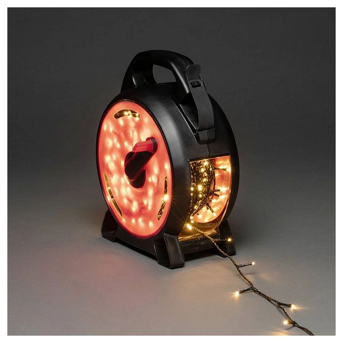En praktisk sladdvinda med ljusslinga som gör att man slipper trassel både vid upp- och nedpackning.