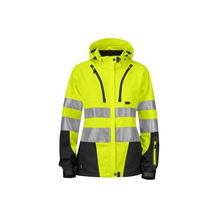 Funktionell softshelljacka för dam designad för att vara både vind- och vattenavvisande, vilket gör den idealisk för alla väderförhållanden. Den främre dragkedjan är utrustad med både in- och utvändig vindslå för att förhindra vinddrag, medan fleecefodret i kragen ger extra komfort. Jackan har praktiska bröstfickor med dragkedja, inklusive en invändig telefonficka med hål för handsfree. Sidofickorna med dragkedja erbjuder ytterligare förvaringsutrymme, och en mindre ficka på vänster ärm är perfekt för nycklar eller nyckelkort. Inuti finns rymliga fickor med dragkedja på båda sidor, samt en extra telefonficka på vänster sida. Ett fäste för ID-kortshållare gör den idealisk för fler arbetsmiljöer. Ventilationskanaler med mesh i sidorna förbättrar andningsförmågan, medan den avtagbara och justerbara huvan samt den förlängda ryggen ger extra skydd. Jackan har en justerbar midja med snodd och ärmslut som kan justeras med kardborre för en perfekt passform.