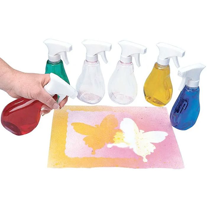 Sprayflaska 300ml. Transparenta flaskor som rymmer 320ml. Lätt för barn att använda. Perfekt till vattenleken eller som målartillbehör.