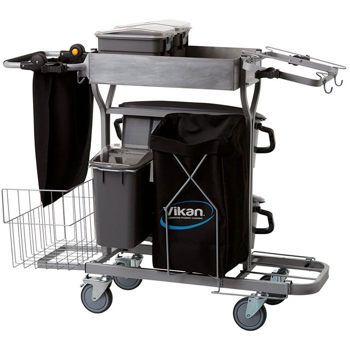 Allsidig städvagn för alla typer av större objekt. Färdig att utrusta för städklart koncept med moppning, fukttorkning och förnödenheter.