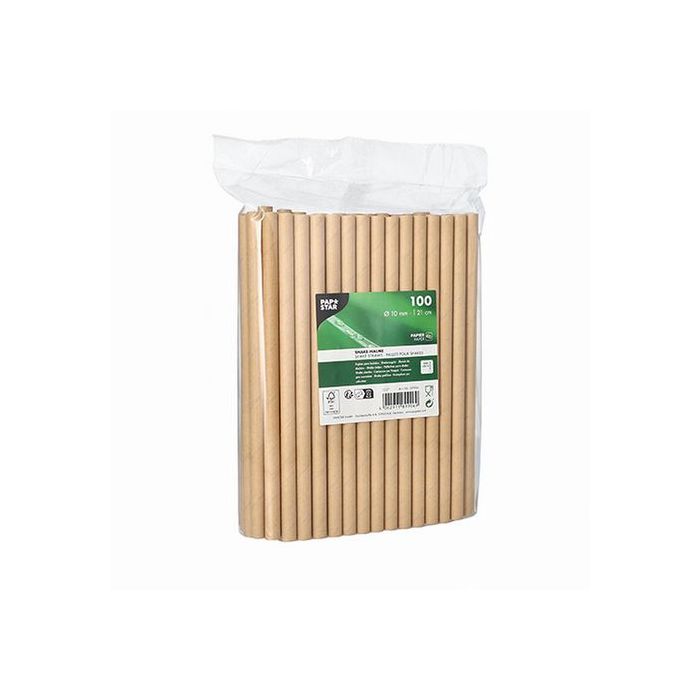 Det miljövänliga alternativet: sugrör av papperDiameter: 8 mmLängd: 21 cmFärg: brunTemperaturbeständig upp till max. 23 °C i ma x. 60 minuterHållbar eftersom det är tillverkat av förnybara råmaterialPerfekt för dina mjölk- och fruktshakes, lemonader och läsk edrycker av alla slag. En riktig blickfångare för din fest!