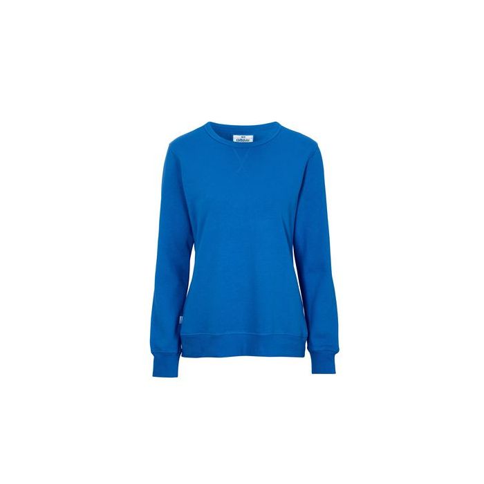 Rundhalsad sweatshirt för dam med borstad insida i normal passform. Dekorationssömmar i overlock som ligger ton i ton. 2x2 ribb runt halskant, mudd i ärmslut och nederkant.