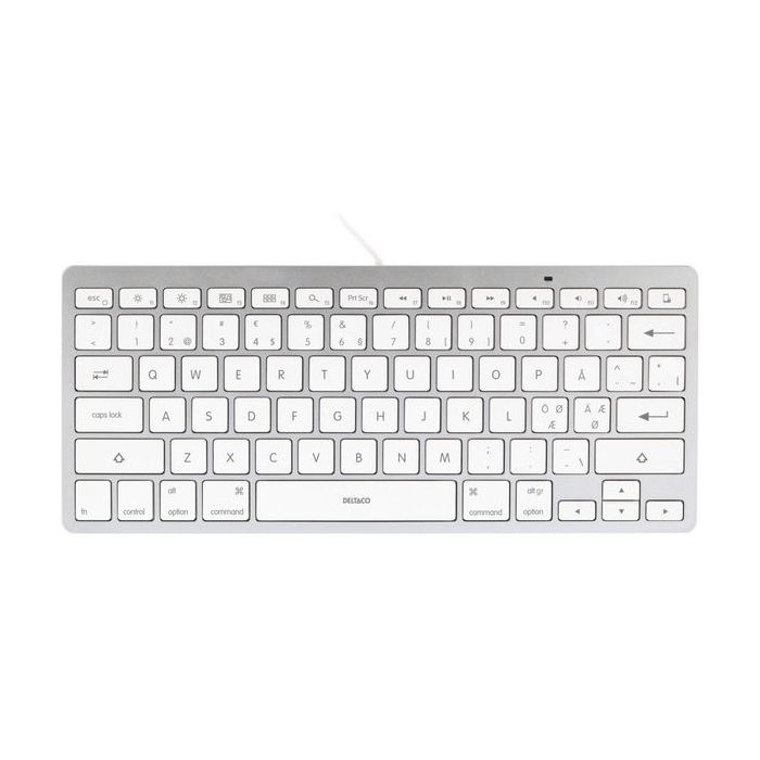 Mini tangentbord i kompakt storlek med trådad USB-C anslutning för iPad/Mac/iPhone Nordisk layout med lågprofil sax-brytare och dedikerade media tangenter anpassade för iPad, iPhone och Mac.