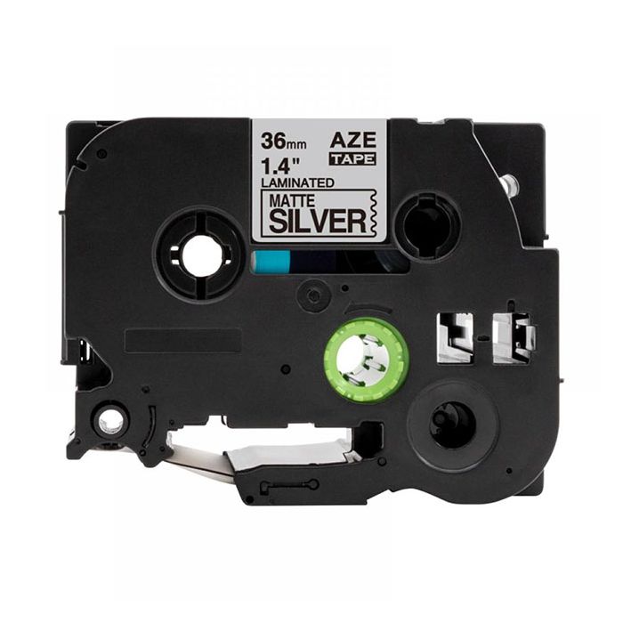 Tape 36mm TZe-M961 M-Svart på Silver. TZ-tejper tål kraftig nötning och långvarig exponering för elementen.