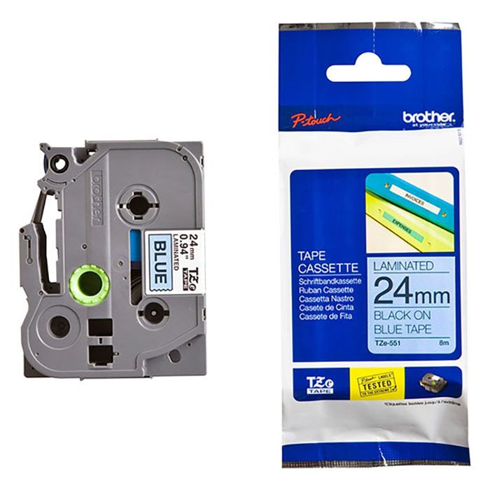 Skriv ut etiketter för pärmar, behållare och lådor med den här blanka märkningstejpen av märket P-Touch, som fungerar med kompatibla Brother P-Touch-etikettskrivare. Den här kassetten erbjuder enkelt utbyte av begagnade kassetter och den självhäftande baksidan fäster snabbt vid olika typer av ytor. Den här slitstarka, blanka P-Touch-märkningstejpen har sex lager för tillförlitlig användning i krävande miljöer som t.ex. i industrin.