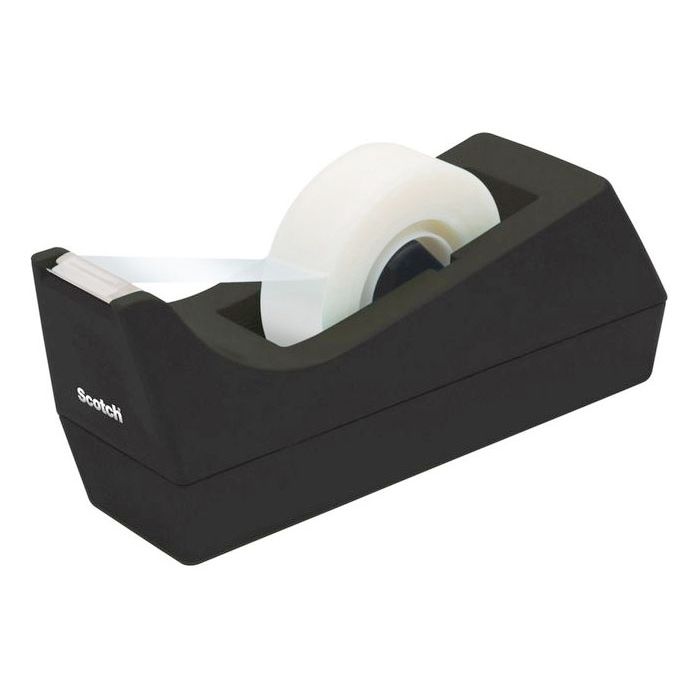 Scotch® tejphållaren har en gummerad, halkfri och vattenbeständig bas och står stadigt på alla slags bord, så att du enkelt kan få tejp vid behov.