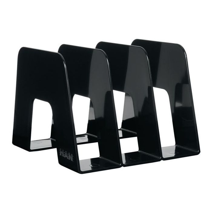Praktiskt magasinställ för ett stort antal tidskrifter, broschyrer och broschyrer. Elegant design, högglansig yta och moderna tydliga linjer kompletterar bilden av ett designorienterat kontor. Idealisk för kontor och privat bruk. 3 fack med en bredd på 65 mm vardera. Halkfria gummimöbelskydd garanterar ett fast grepp