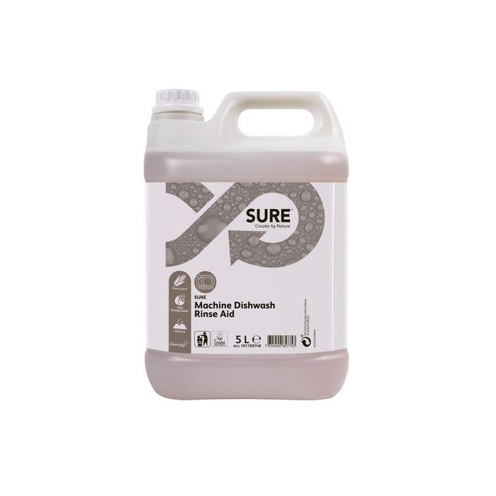 SURE sköljmedel är en del av ett unikt sortiment av växtbaserade, 100% biologiskt nedbrytbara produkter för alla dagliga rengöringsb ehov. Koncentrerat lågskummande sköljmedel med kalkbindare för diskmaskiner.