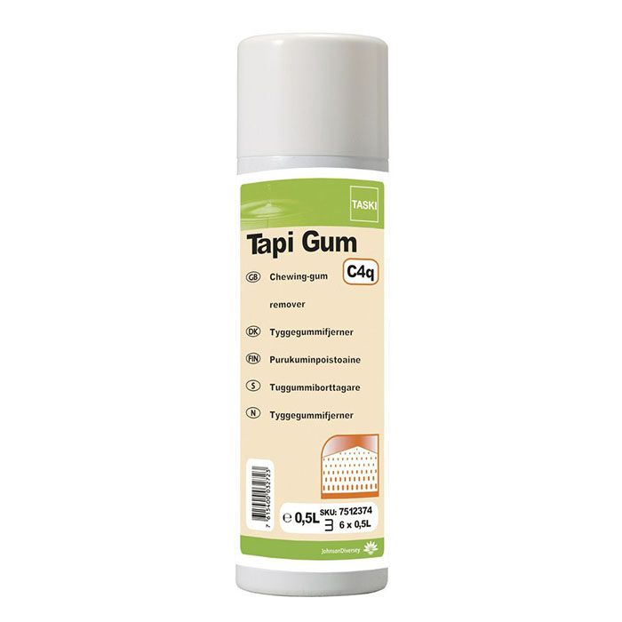 Tapi Gums sammansättning gör det enkelt och effektivt att ta bort tuggummi. Alla som har hittat tuggummi någonstans där det inte borde vara vet hur svårt och frustrerande det kan vara att hitta en säker och effektiv borttagningsmetod. Tapi Gum-sammansättningen gör det snabbt och enkelt att ta bort tuggummi. Denna aerosolspray har en unik sammansättning som fryser tuggummi vid kontakt. Kylan gör tuggummit fogligt och lätt att ta bort med antingen en plastskrapa eller en dammsugare. Tuggummit är borta och fibrerna i mattan och möblerna är oskadda. Den snabbverkande sammansättningen tar bort tuggummit helt samtidigt som de högsta säkerhetsstandarderna bibehålls. Vätskan innehåller inte freoner. Produkten är färdig att använda, och behöver inte frysas eller kylas för att vara effektiv, vilket gör den enkel att transportera och förvara. Den är perfekt för skolor, gym, restauranger, hotell och anläggningar med stor genomströmning och hög omsättning.