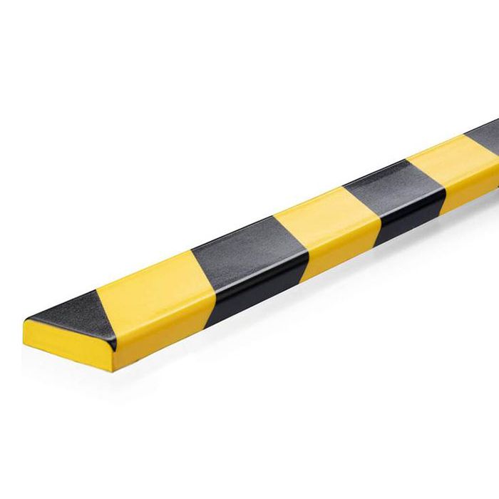 Självhäftande väggskydd med stötdämpande effekt. Svart/gula ränder varnar och uppmärksammar för eventuell risk.