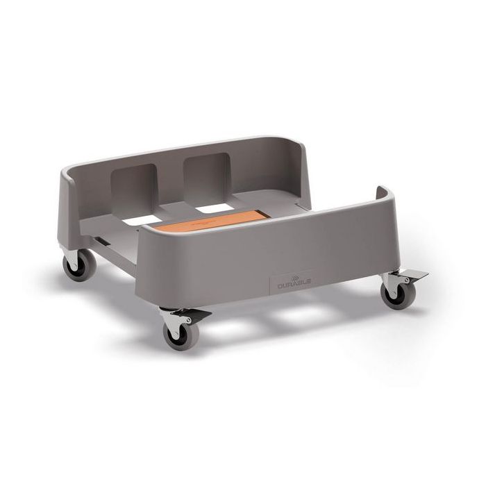 - för både60 och 90 liters tunnor, kan kopplas ihop med hjälp av de medföljande och integrerade kopplingarna.Själva bottenplattan är tillverkad av 100% återvunnen polypropylenplast, vilket gör att produkten inkl hjul totalt sett är tillverkad av 50% återvunnet material. Detta går i linje med DURABLEs hållbarhetsstrategi RETHINK som fokuserar på att minimera miljöpåverkan genom att designa produkter som är funktionella och hållbara samt tillverkade med omtanke om resurser och återanvändning. Tål fukt, vilket underlättar vid rengöring. Länkhjulen har en diameter på 50 mm och två av dem har broms.Belastningsbar upp till 100 kgMått inkl. hjul: 390x165x415mm (BxHxD)