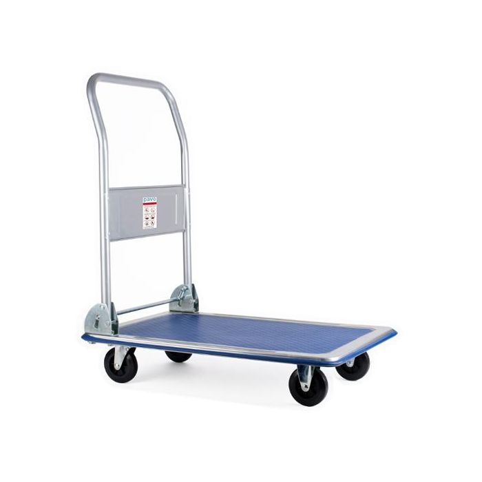Mångsidig, stabil och lätthanterlig transportvagn som dessutom är hopfällbar. Praktisk hopfällbar transportvagn som hjälper dig att enkelt flytta olika typer av laster. Oavsett om du befinner dig på lager, verkstad, butik eller hemma. Den robusta ramen i stål ger både stabilitet och lång hållbarhet. Vagnen kan fällas ihop när den inte används, vilket gör den enkel att förvara. Det bekväma körhandtaget och de två styrbara hjulen gör den lätt att manövrera även i trånga utrymmen. Plattformen är robust och stabil och passar perfekt för transport av till exempel dryckeslådor, paket, väskor, verktyg och andra föremål. Den har gott om utrymme för att flytta gods på ett säkert och effektivt sätt. Två av de fyra hjulen är styrbara, vilket ger dig utmärkt rörlighet och kontroll. Det gör vagnen till ett oumbärligt hjälpmedel i både arbete och vardag. Material: stål Max kapacitet: 150 kg Vikt: 7,2 kg Mått: 380 x 520 x 260 mm Hjultyp: 2 svängbara, 2 fasta