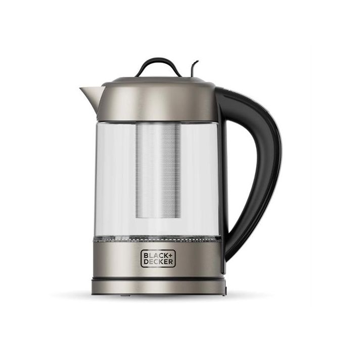 Stilren vattenkokare i glas och inbyggt té-filter. Upplev den perfekta upplevelsen med Black+Decker vattenkokare med té-filter. Med den digitala temperaturväljaren (60-100ºC) får du alltid rätt temperatur för din favoritdryck. Vattenkokaren har en elegant glasdesign med färgskiftande ljusring som visar aktuell temperatur. Det mikro-perforerade, rostfria filtret garanterar en perfekt bryggning för alla typer av té. Vattenkokaren är kraftfull och effektiv med 2200W och dolt värmeelement för snabb uppvärmning och enkel rengöring. Med 360° roterbar bas, ergonomiskt handtag, och hermetiskt förseglat lock för enkel och säker användning. 2200 W Roterbar bas Inbyggt te-filter Mått: H 265 x B 176 mm CE-märkt