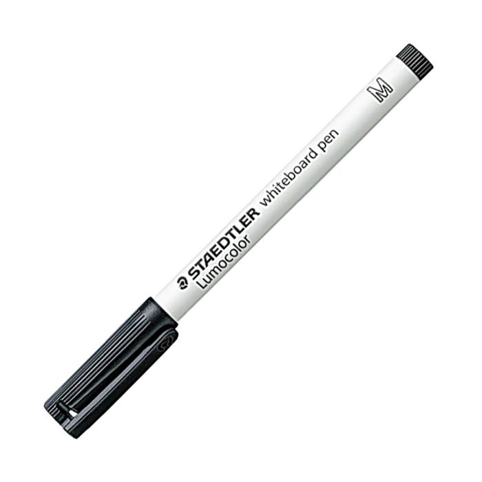 Whiteboardpenna STAEDTLER rund 1,0 har ett Dry-safe bläck som gör att den kan ligga utan kork i 8 timmar utan att torka. Minimal lukt. Torkas bort med torr trasa. Med huv. Rund spets. Linjebredd: 1 mm. Textfärg: Svart. Pennkropp: Vit